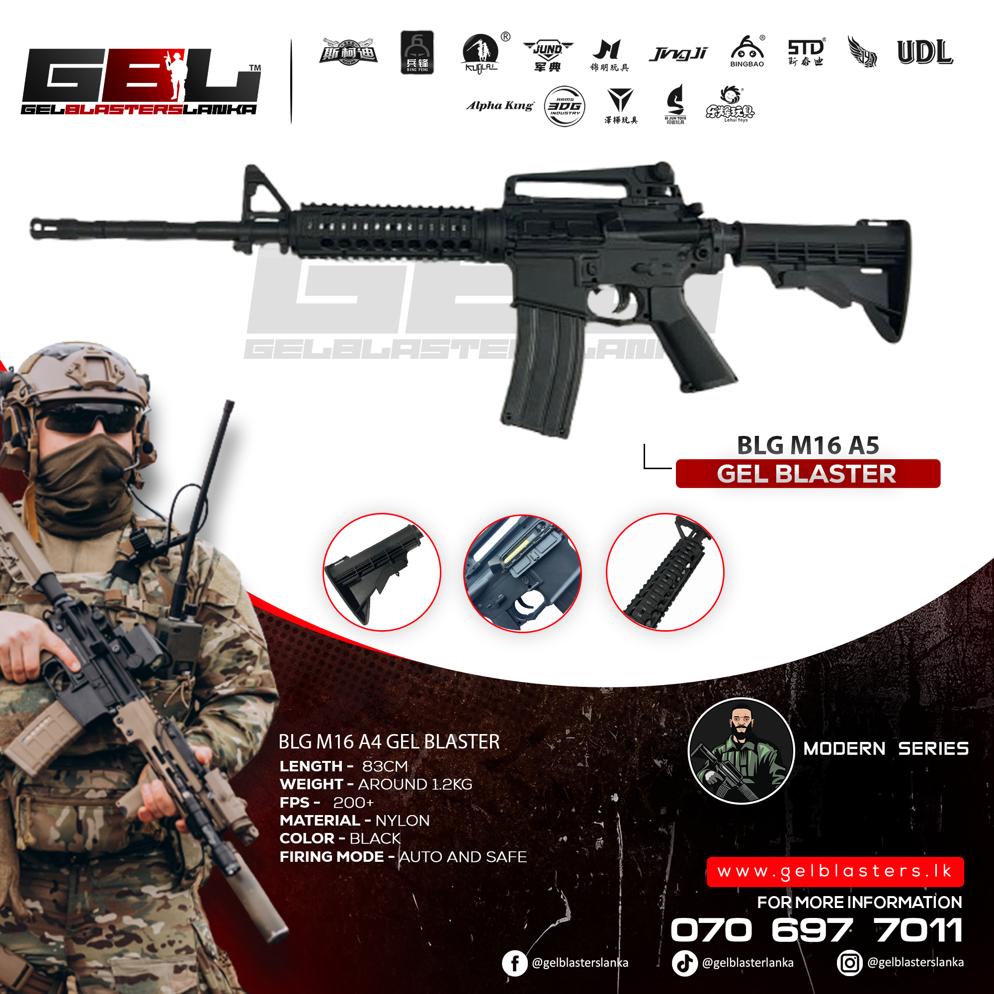 - 1 x BLG M16 A5 Gel Blaster