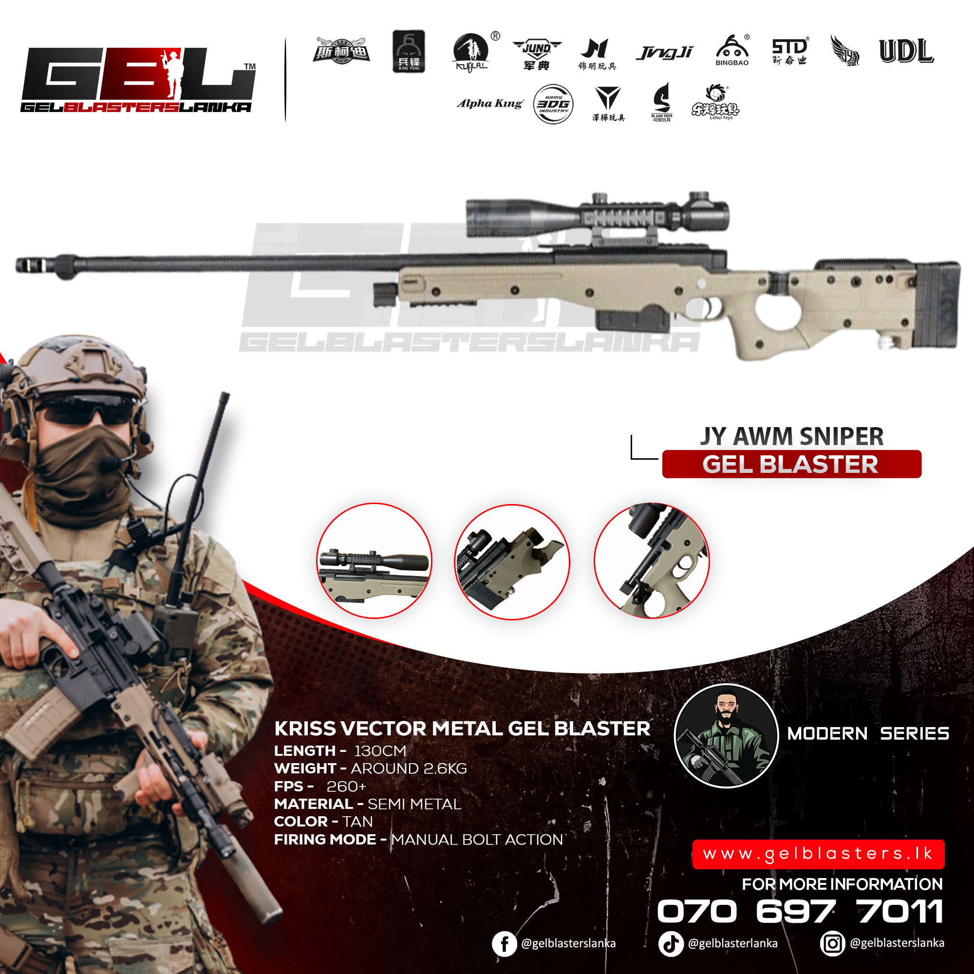 • 1 x JY AWM Sniper Gel Blaster