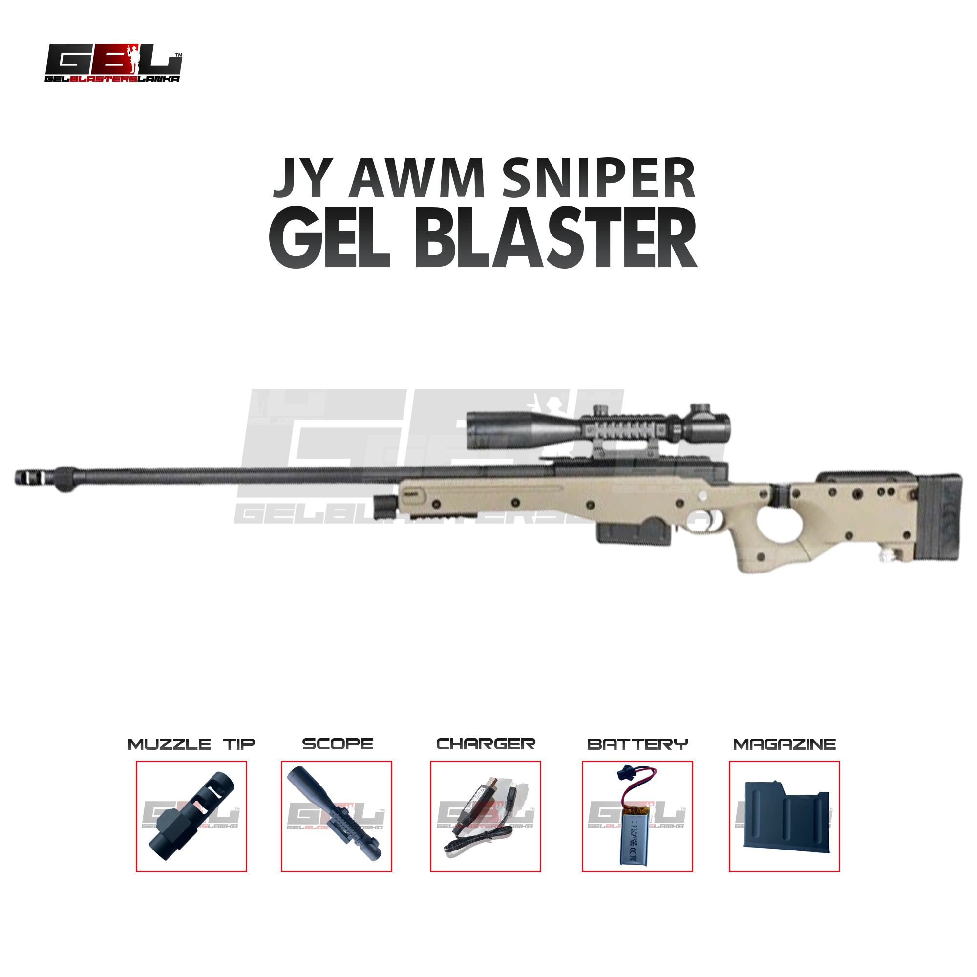 JY AWM Sniper Gel Blaster – Tan color