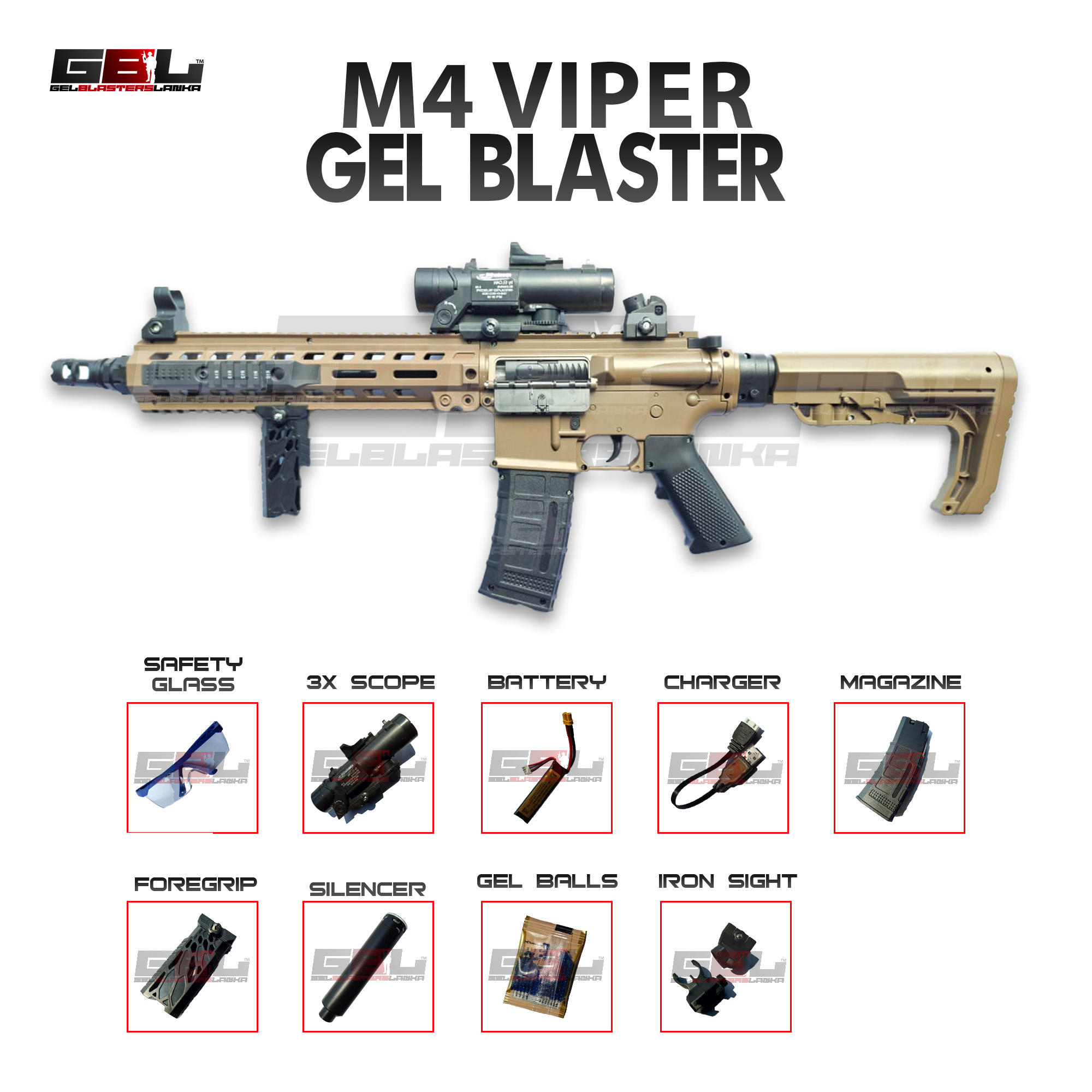- 1 x M4 Viper Gel Blaster