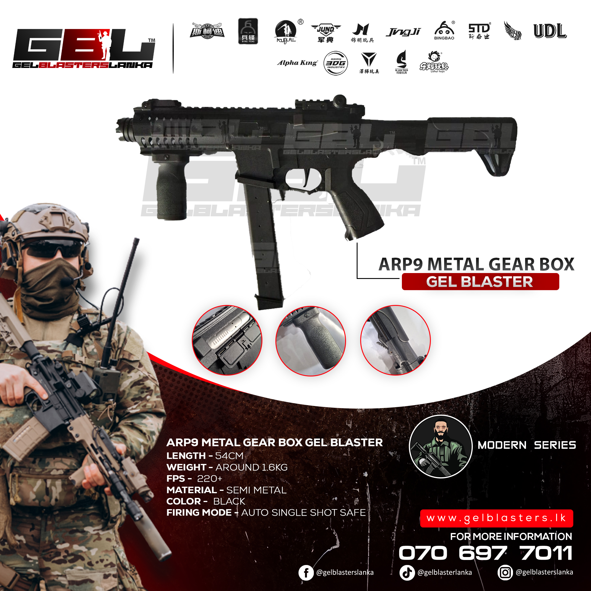Experience unbeatable realism, performance, and value with this premium airsoft replica—now available at the lowest price in Sri Lanka. Designed for players who demand authenticity without breaking the bank, this model delivers top-tier features at an incredible price point.Experience next-level realism and performance with this high-quality airsoft replica, designed for players who demand both authenticity and durability. Crafted with a realistic 1:1 scale design, it closely mirrors the original firearm, featuring finely detailed external elements for an immersive look and feel.Equipped with Safe, Semi, and Auto fire modes, the selector switch allows you to adapt quickly to different combat scenarios, enhancing control and gameplay versatility.