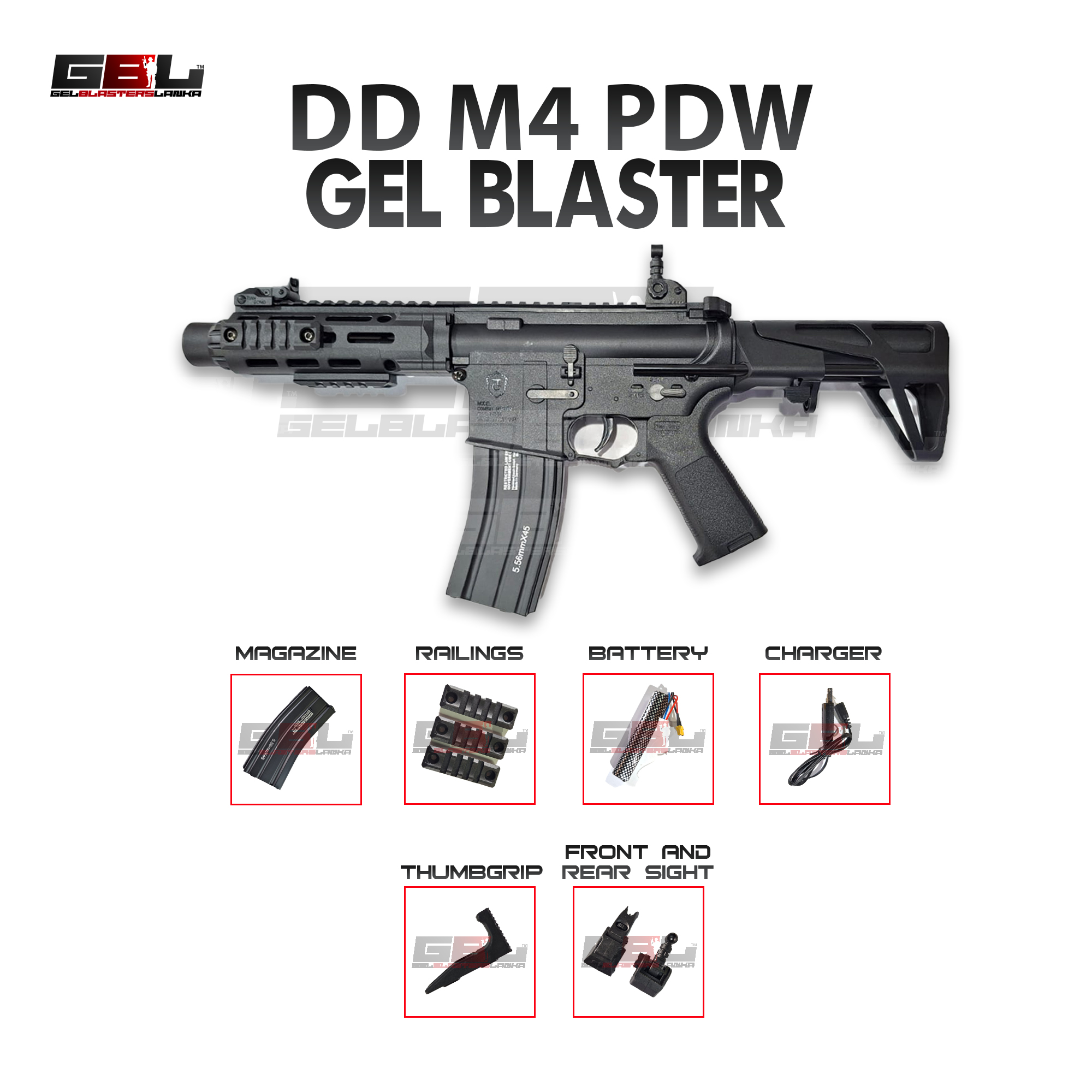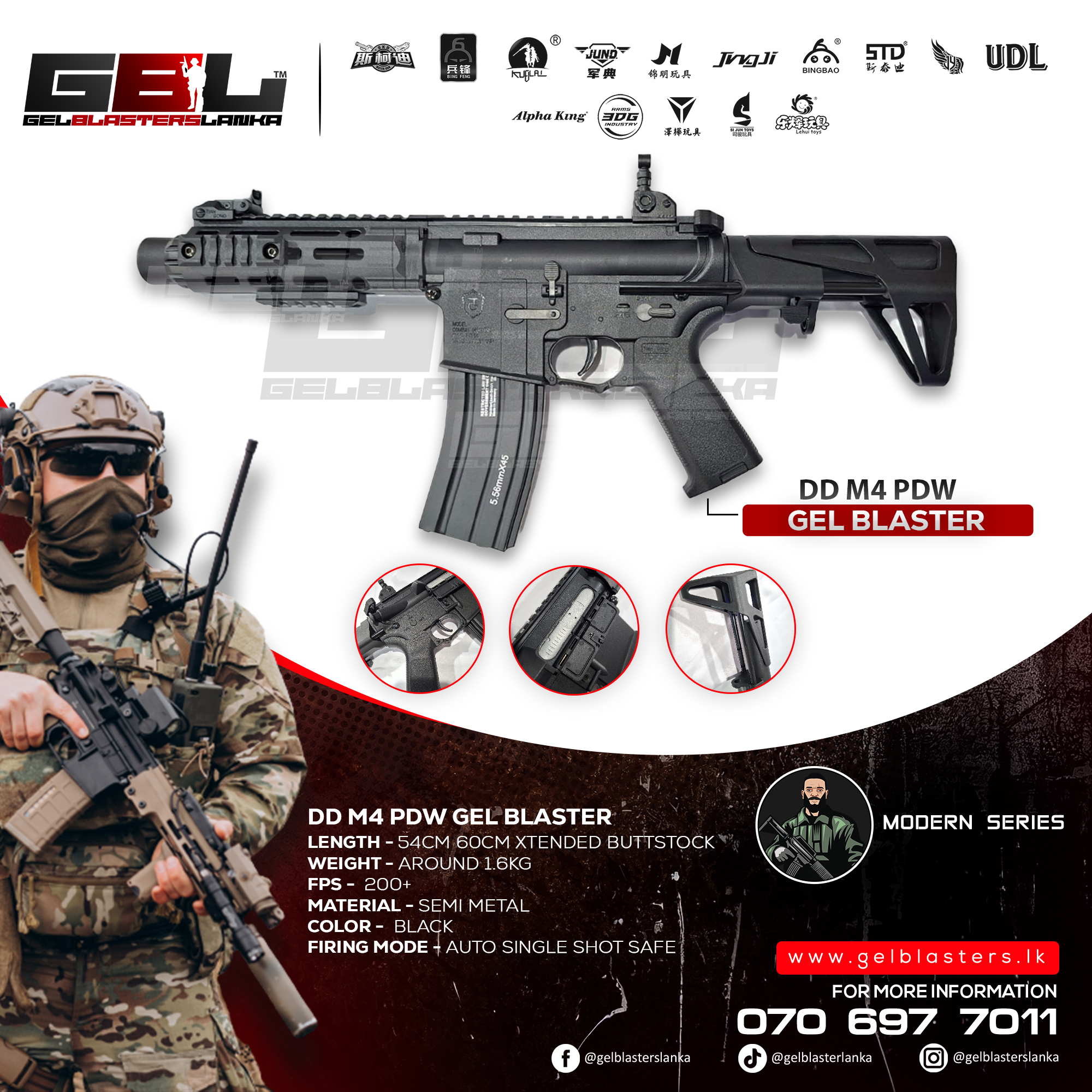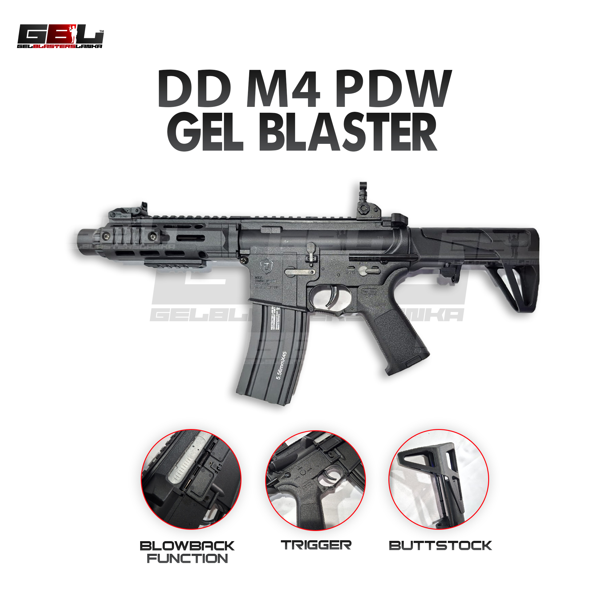 The TG DD M4 PDW Gel Blaster delivers a powerful mix of realism, performance, and durability—perfect for both beginners and experienced players. Designed with a realistic 1:1 scale, this PDW-style M4 closely resembles the real firearm, featuring detailed externals for an authentic tactical look.Built with a solid nylon body and metal internal components, the TG DD M4 PDW ensures long-lasting reliability during intense gel blaster battles. The upgraded metal internals provide smoother operation, improved firing consistency, and enhanced durability over standard models.Equipped with Safe, Semi, and Full Auto fire modes, you can easily switch firing options to match your combat style. The prefeed function allows faster reloads, minimizing downtime and keeping you in action without interruptions.